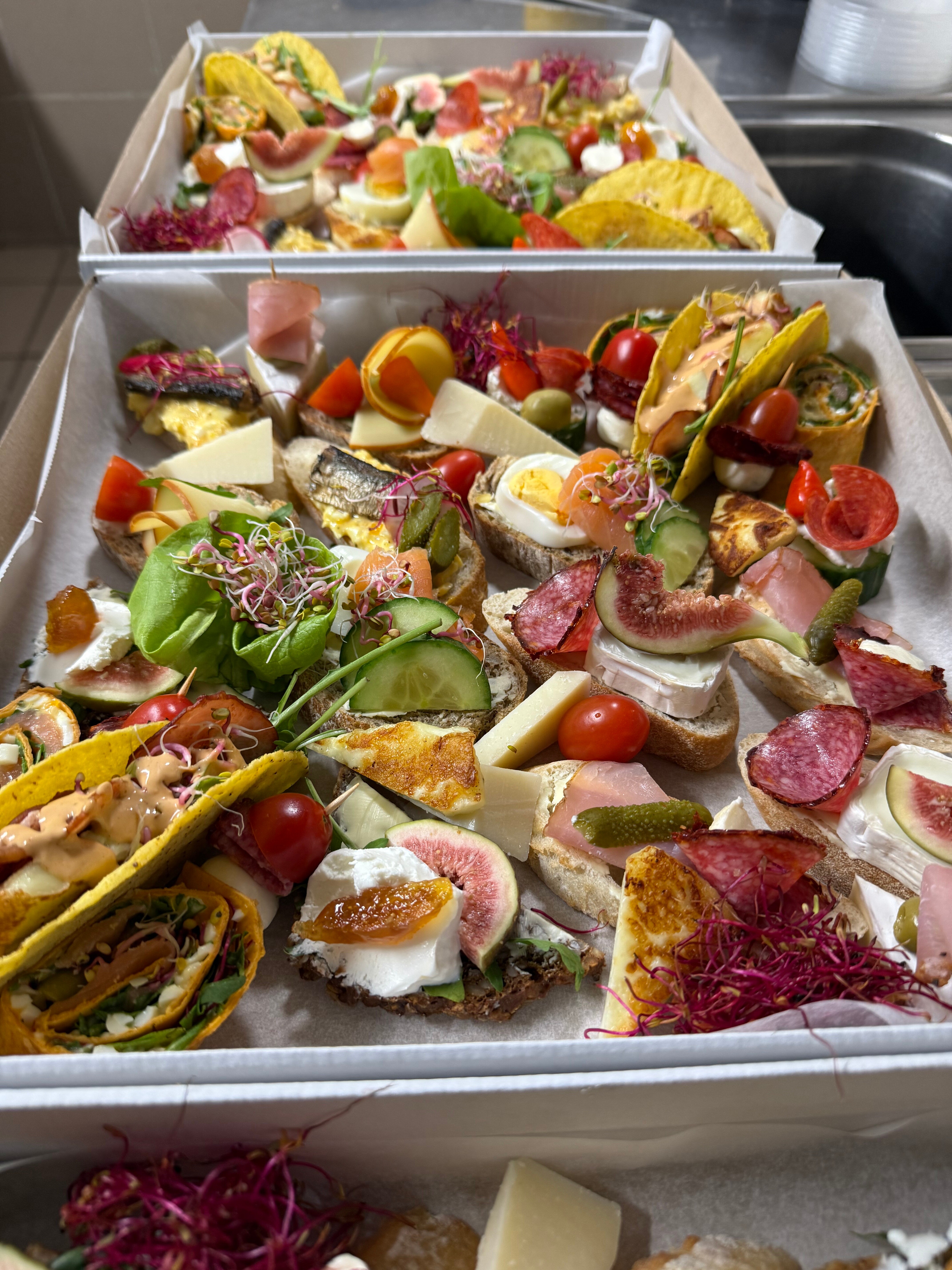 5x hummus, rukola, chorizo, ogórek zielony, oliwki